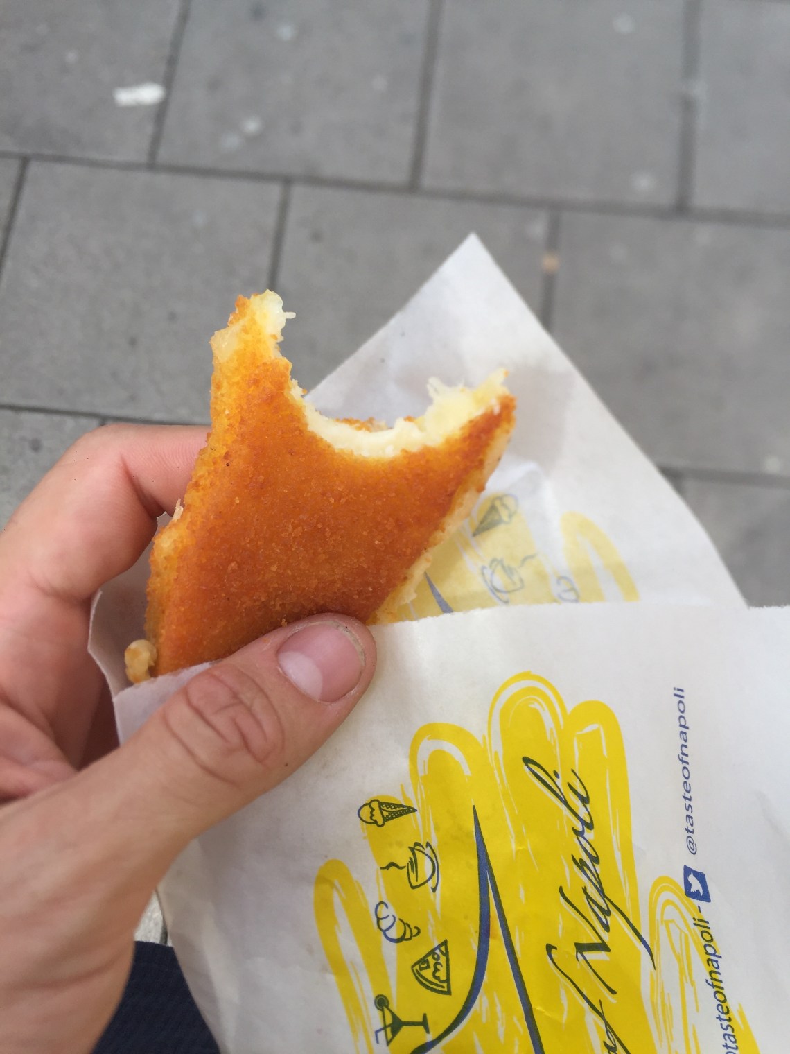 You may have noticed, in the photo of the pizza behind the screen, there were further little beige things tucked away at the back- in Italy, little take away pizzerias all tend to have little side nibbles called suppli.