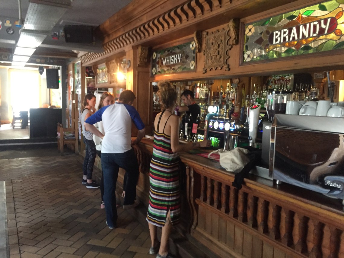 It was eerily empty, especially considering it took a good 45 minutes to get a pint here during the World Cup last year. Wandering inside, there were a few stragglers at the bar, but service was happily immediate when we grabbed a couple of beers and sat outside.