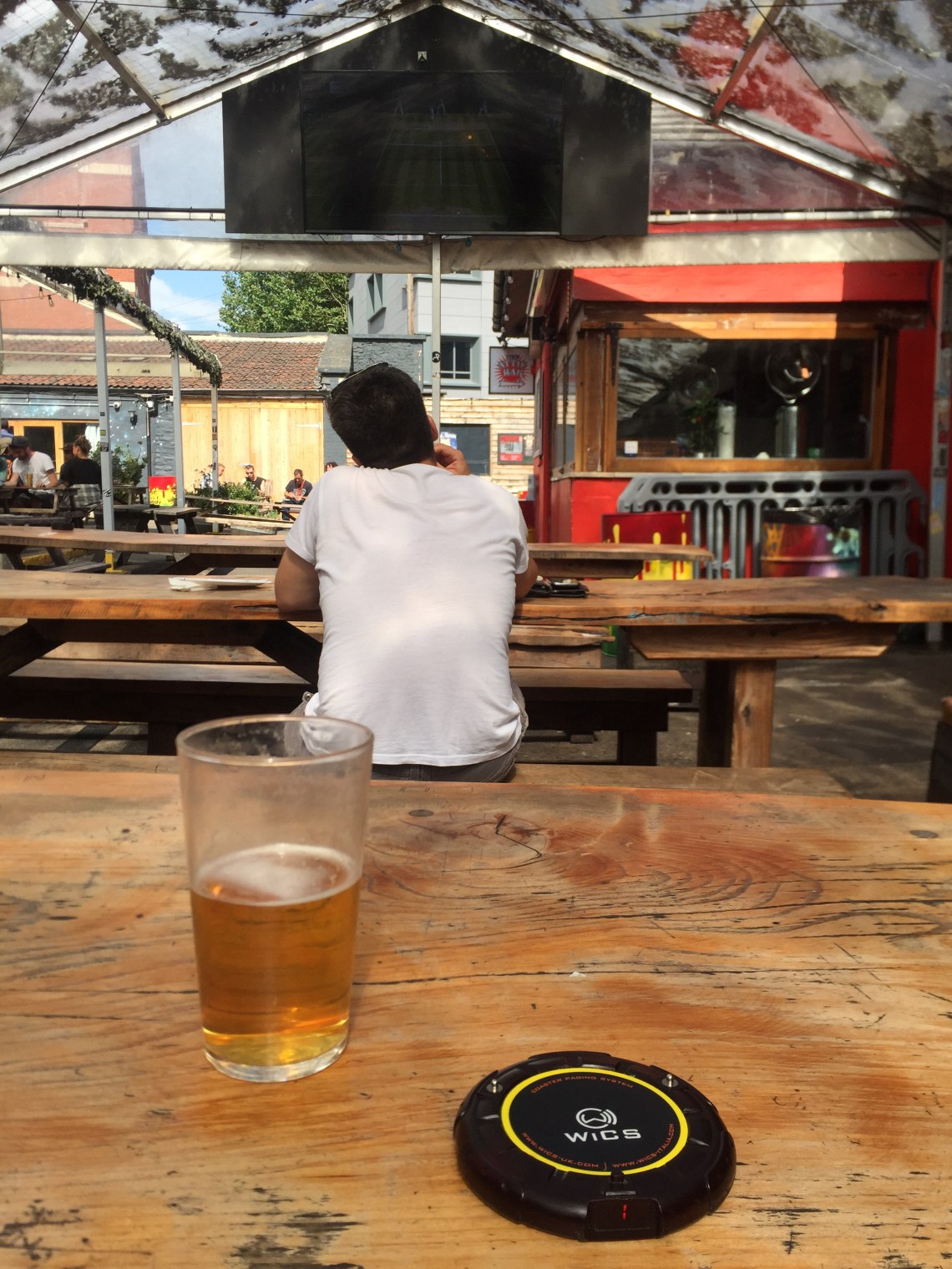On the day of Federer v Djokovic at the Wimbledon final, the sun was shining bright, meaning we ideally wanted to watch the tennis and be outside at the same time. (And, additionally be at a place that would sell me a beer). Because I couldn’t be arsed to walk all the way to Millennium Square to watch it on the big screen, Holly and I went to Blue Moon, a pub/bar/hostel/restaurant to watch it on the outside screens there.